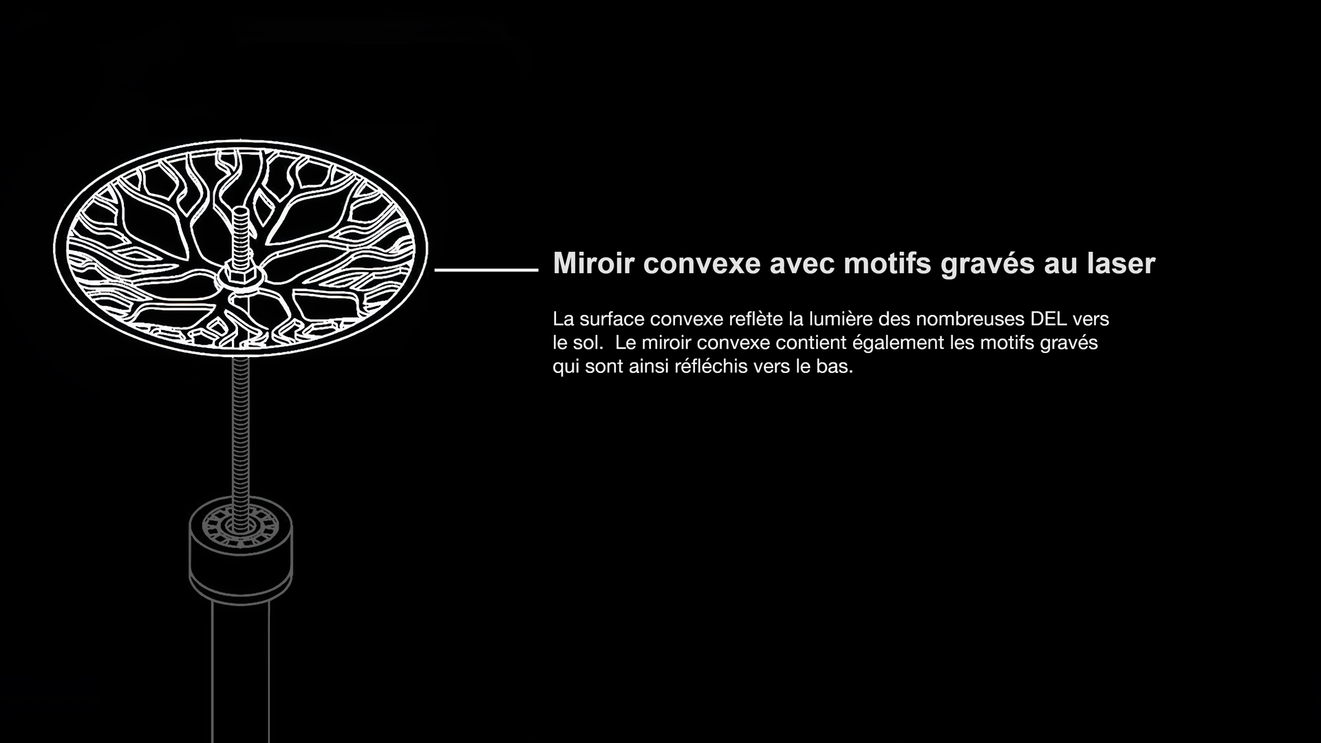 Design d’une tête de lampadaire qui projette des illustrations au sol. Mon but était de créer une expérience contemplative et accessible dans la ville. Ce concept permettrait d’apporter de la poésie dans la ville tout en l’éclairant.